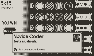 - Tilt: In Challenge mode, tilt the Playdate to scroll through results and additional slots